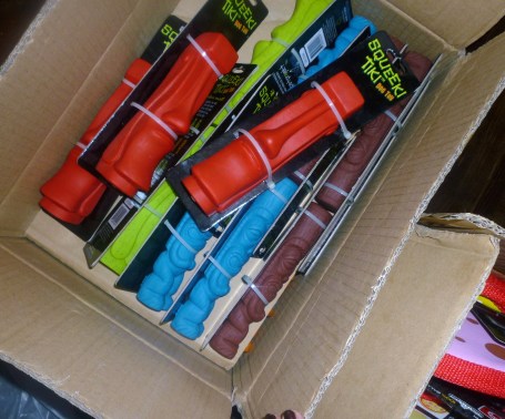 Just take a look at these! Squeeki Tikis, Chewbies, pizza frisbees… a dazzling range of squeaky chew toys that look like fish, drumsticks, steaks and sea shells. I am giving most of these away as gifts. Check out the collection at www.otomik.com