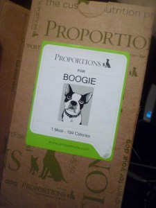 I can imagine that Proportions would be easy to feed when traveling… but the whole program seems expensive to me – about $90 per month, when I can cook Boogie’s food for much less.